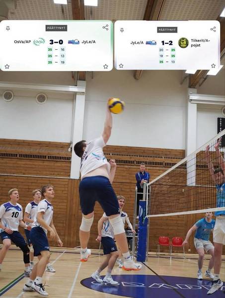 "Ekassa pelissä vastaan asettui OsVa. Ensimmäinen erä alkoi vaisusti JyLen osalta ja OsVa johti 5-12. JyLe sai vähän kirittyä, mutta kiri jäi lyhyeen ja OsVa vei ekan erän 16-25. Toinen erä alkoi tasaisesti tilanteeseen 8-9 sitten OsValle pitkä syöttöputki ja toinen erä meni OsValle 13-25. Kolmas erä alkoi JyLen johdossa tilanteeseen 4-1, mutta pian OsVa tuli tasoihin ja ohi. OsVa hallitsi loppu erää ja vei lukemin 19-25. Eli ottelu meni Osvalle erin 0-3.